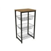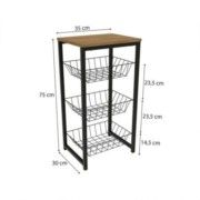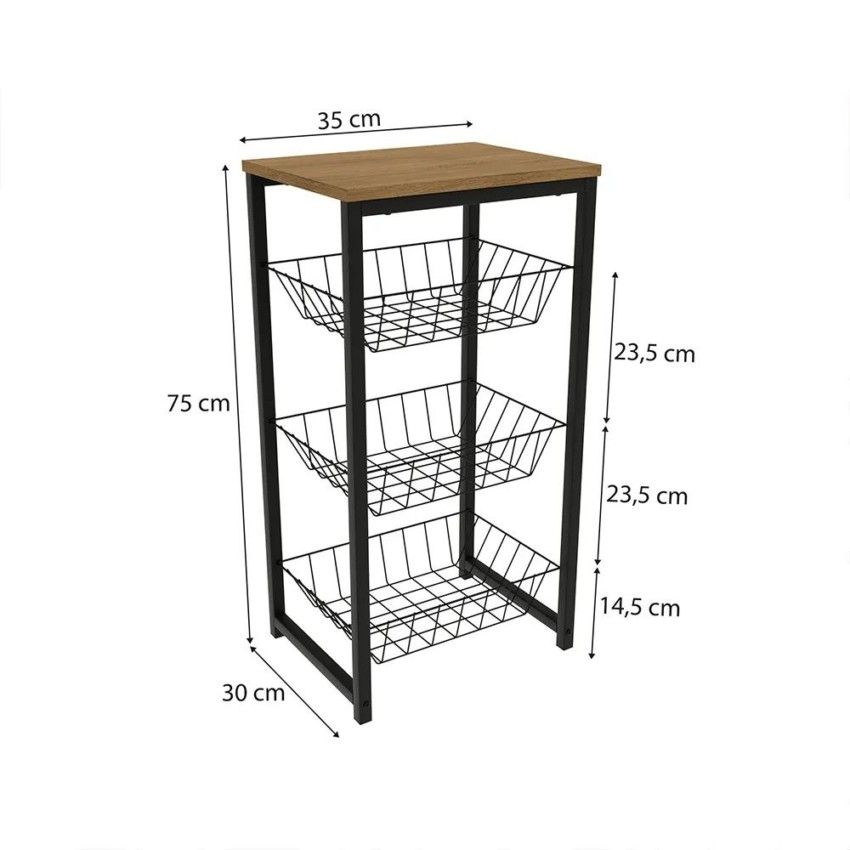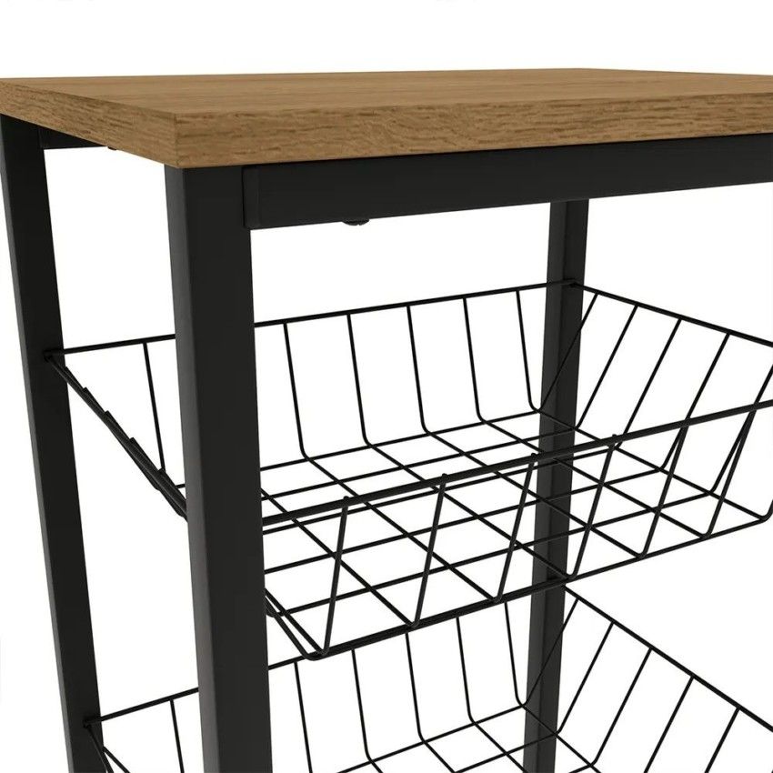 Com prateleira superior e três cestos vazados, ela possui 75cm de altura e é produzida em estrutura metálica na cor preto fosco, pintada com tinta epóxi, que garante mais resistência à umidade e facilita a limpeza, enquanto que o tampo é em chapa MDP de 15mm, com pintura touch na cor canela, possui a textura dos veios da madeira, garantindo uma composição moderna e elegante. E com uma montagem fácil e rápida, ela combina com todos os ambientes.