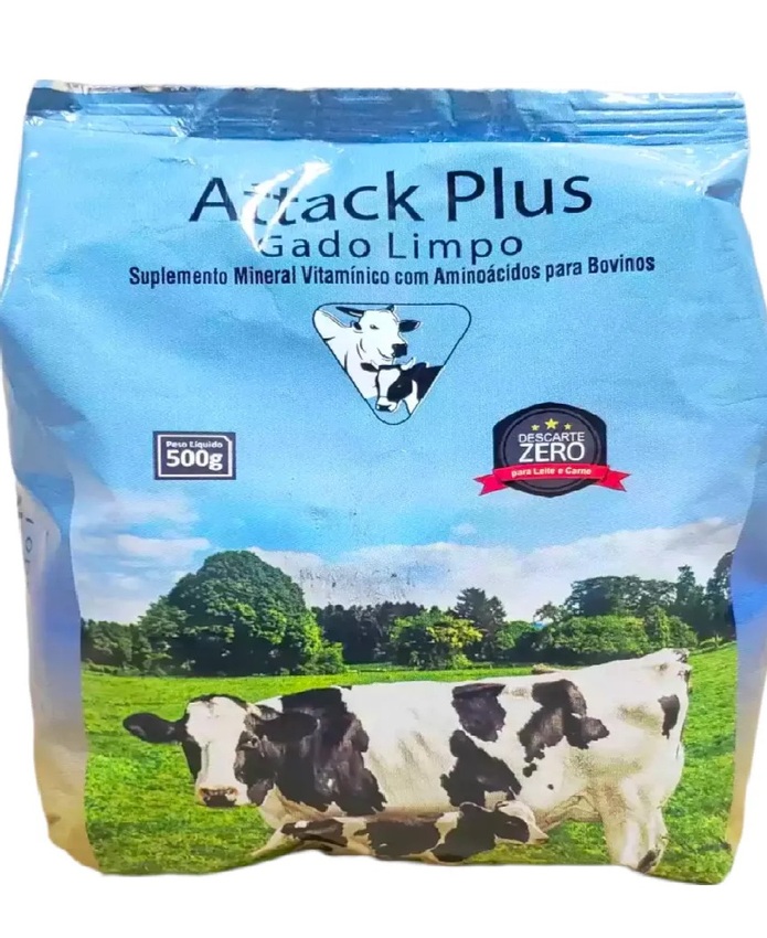 MODO DE USO E DOSAGEMMisturar o Attack Plus Gado Limpo no sal ou na ração, de modo que o consumo diário seja de 2 gramas ao dia por animal.