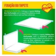 Machos: coloque o Tapete Keldog Antiodor com a superfície plástica virada para baixo e fixe-o em forma de L, com as fitas adesivas na parede e no piso.