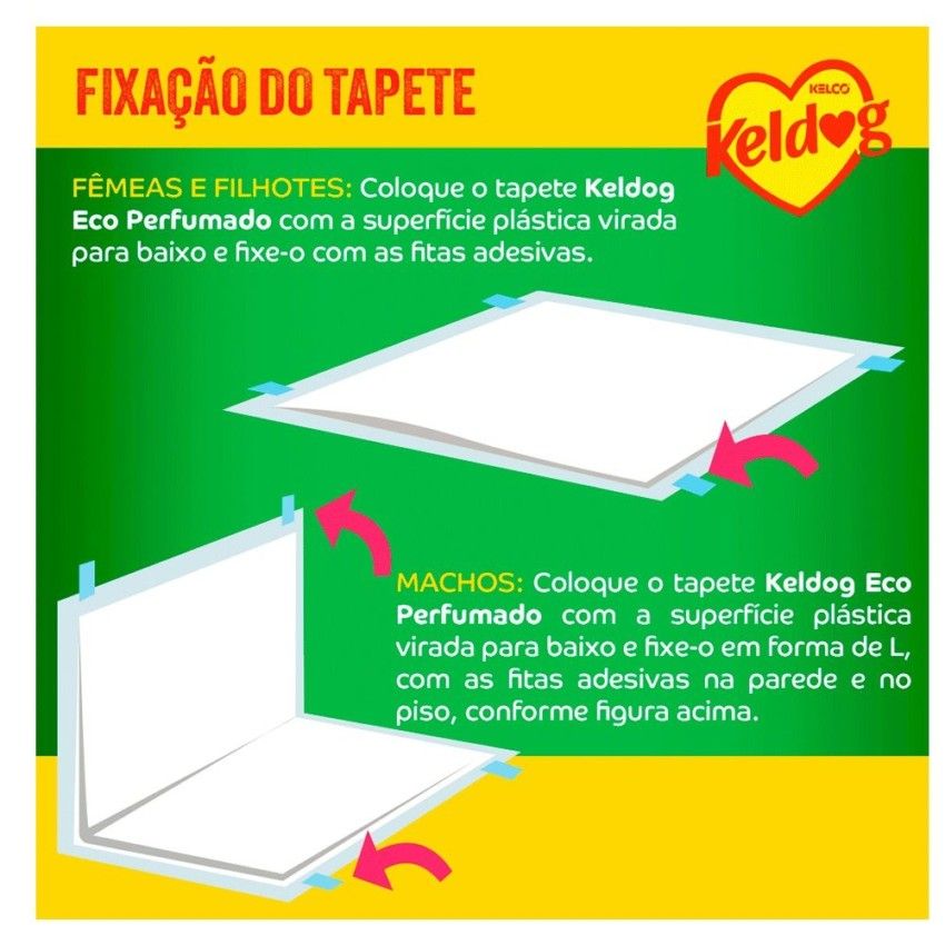 Fêmeas e filhotes: coloque o Tapete Keldog Antiodor com a superfície plástica virada para baixo e fixe-o com as fitas adesivas.