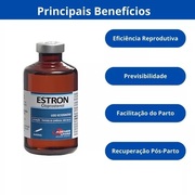 Equinos: O produto Estron é indicado para situações onde há a necessidade de luteólise como: sincronização de cio; indução da luteólise após morte prematura e absorção do feto; eliminação de pseudogestação.