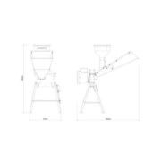 Acompanhado de quatro peneiras: a peneira de 3 mm (quirera fina) possui uma produção média de 80-105 kg/h, a peneira de 5 mm (quirera grossa) possui uma produção média de 130-185 kg/h, a peneira de 10 mm (rolão) possui uma produção média de 100-240 kg/h e a peneira lisa (forragem) possui uma produção média de 510-910 kg/h.