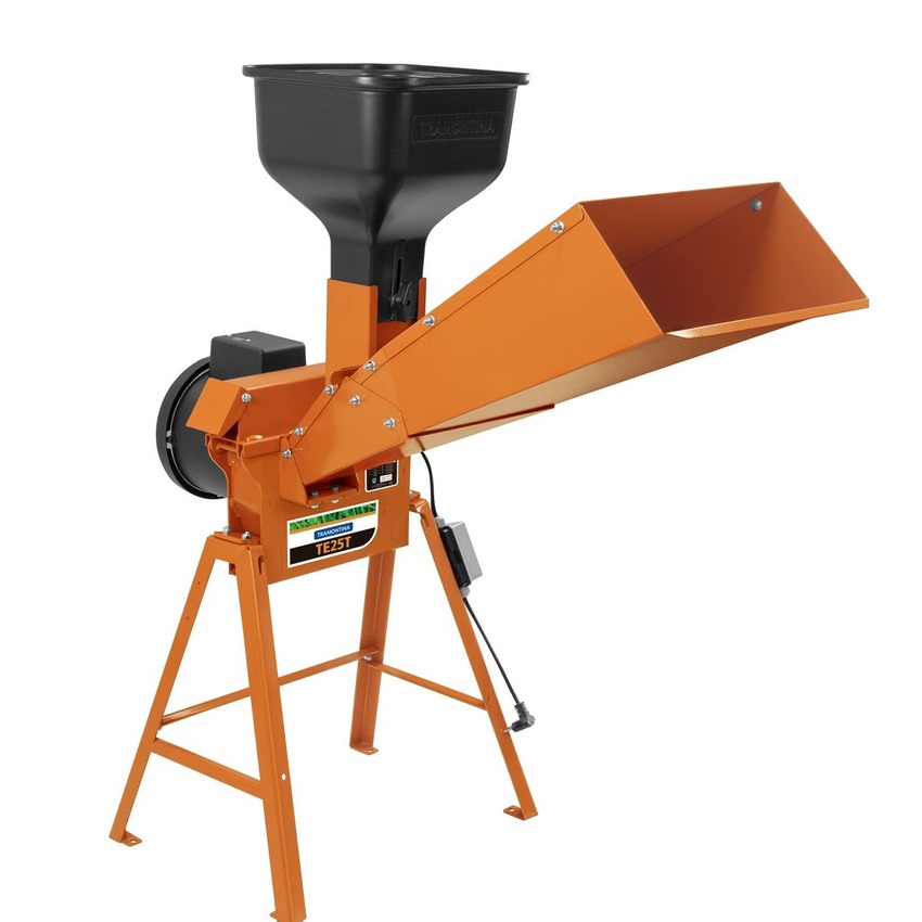 Possui ganchos para prender o saco na saída inferior, proporcionando total aproveitamento do material triturado.