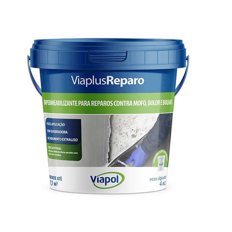 Para embalagem de 4 kg do Viaplus Reparo utilizar 1 litro de água limpa (4 medidas do dosador 250 ml).