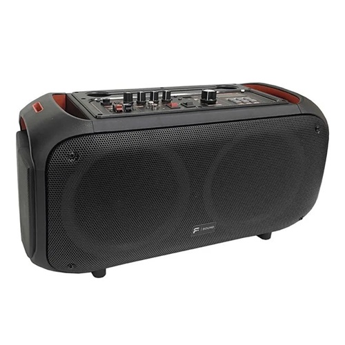 A caixa conta com um microfone integrado, facilitando a interação durante as sessões de karaokê. O carregamento é feito via DC 9V Bivolt, garantindo praticidade e rapidez. Sintonize suas estações favoritas com o rádio embutido e aproveite a versatilidade que a F-Sound 1068 oferece para todas as suas atividades.