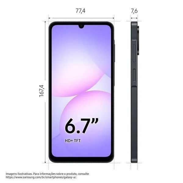 Tamanho (Tela Principal): 171.3mm (6.7" retângulo cheio) / 167.3mm (6.6" cantos arredondados)