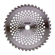 Lâmina Circular Gold, com 40 dentes de Vídea, 255mm de diâmetro e 2mm de espessura. Seu encaixe é universal, pois acompanha uma arruela que reduz o furo central de 25,4mm para 20mm. Com pintura feita por Cataforese é mais resistente à corrosão. Seus dentes de vídea soldados à laser possuem encaixe especial, garantindo mais segurança, desempenho e durabilidade. É ideal para terrenos com cascalhos, com grama alta e arbustos, e também para serrar pequenos galhos.