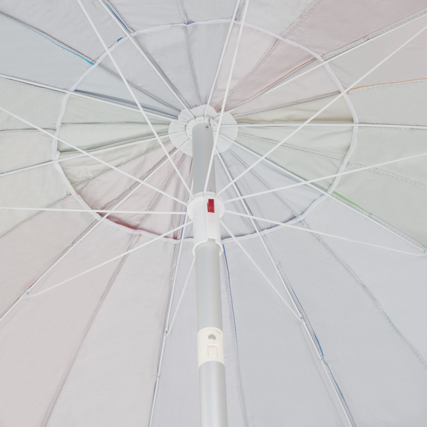 Guarda Sol de Alumínio Rainbow Mor Alt: 220 cm. Colorido Para se divertir na praia ou na piscina e se proteger do sol, alguns itens são indispensáveis. Este Guarda-Sol é ideal para quem procura por sombra e qualidade. O Guarda-Sol de 2,20 metros é fabricado com estrutura em alumínio e Poliéster. Com uma grande saída de ar, que garante maior estabilidade do guarda-sol. É articulável, de forma que sua posição possa ser ajustada de acordo com o sol. Feito em poliéster com revestimento em silvercoating, possui FPS 100.
