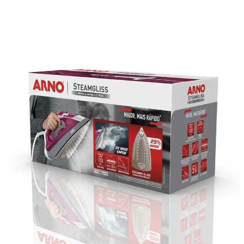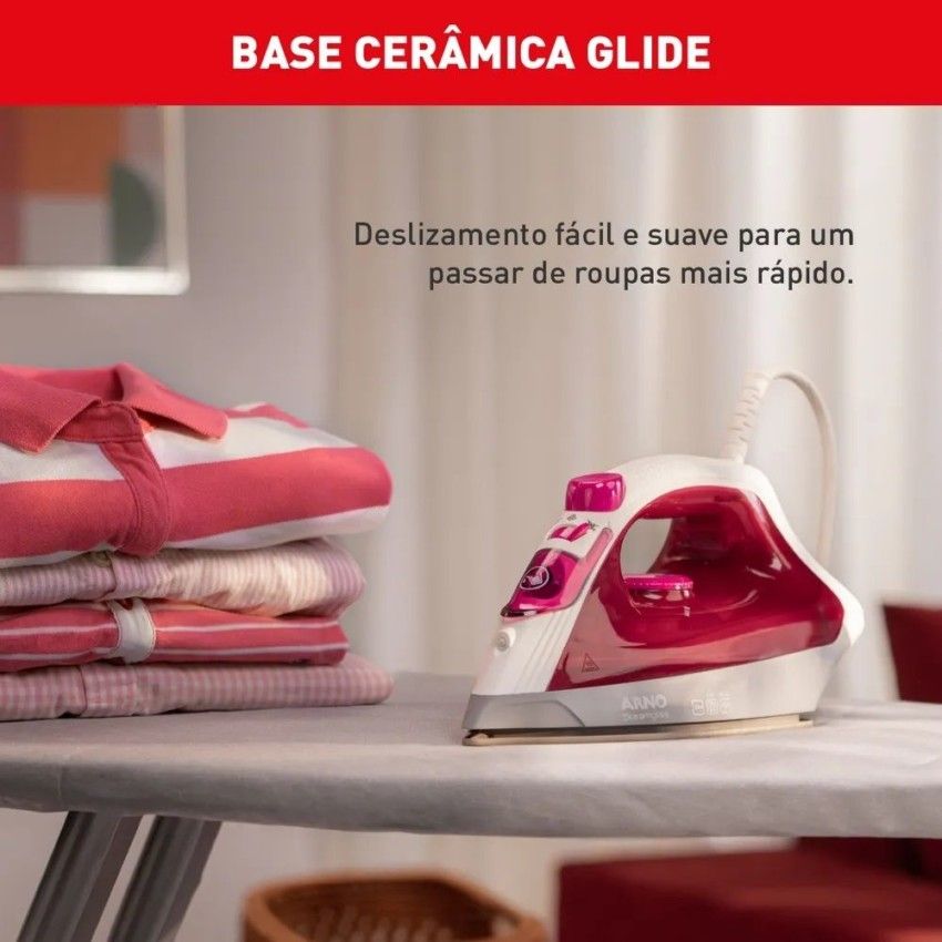 Passe roupas de maneira mais fácil com o dobro de vapor: passar roupas pode ser uma tarefa prática e rápida com a nova geração de ferros Steamgliss da Arno que possui 2x MAIS VAPOR garantindo excelente deslizamento com muito menos esforço.